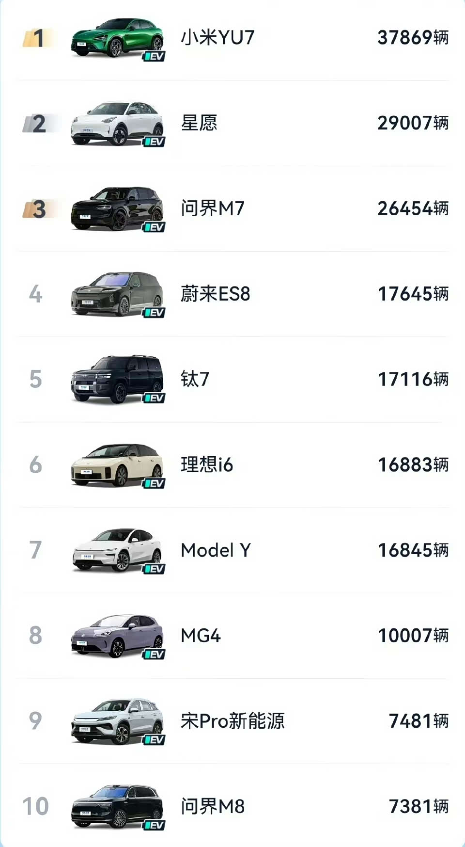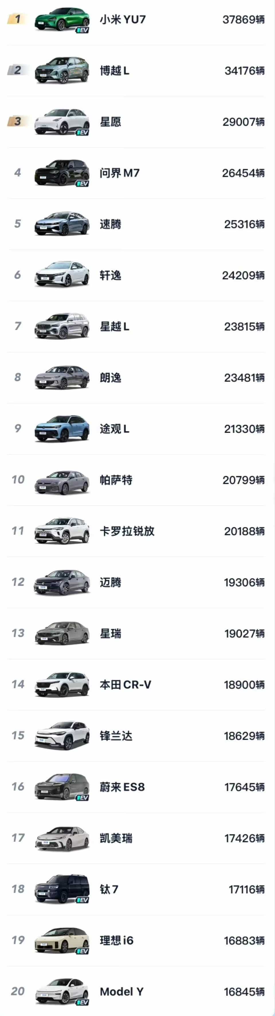 第一眼看这个榜单以为是假的,实际上是个漏洞。一看前10 都没有Model Y和秦PLUS还以为给漏了,其实不是小米YU7销量增长成第一了,而是前几对手都掉下来了,你看Model Y的12月销量还是断崖6.5万这种断崖领先,上4万的都没有一个,上个月就掉1.6万了,一个月掉了5万销量也是旷古烁今了,还有那些常青树,比如吉利星愿、比亚迪秦PLUS少则一万多则几万都掉没了,只有YU7几乎没啥变化,合着是政策退坡不影响小米只影响其他的,对手都拉了,那不自然而然成第一了。另外特斯拉这个掉5万是极不正常的,它可能是给产能全出口了,国内没货了,后面产能做好很可能就重回第一了。