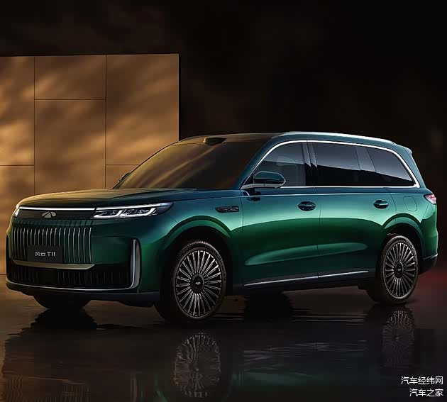 风云T11定位于大型SUV,车身尺寸达到5205×1998×1800毫米,轴距为3120毫米。侧面比例协调,超 5.2 米车长带来修长的车身线条,1800毫米的车高则确保了车内空间的充裕。20英寸的轮圈搭配255/50 R20规格的静音轮胎,既保证了行驶舒适性,也提升了整车的气场。