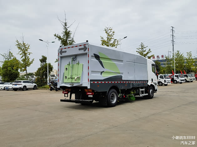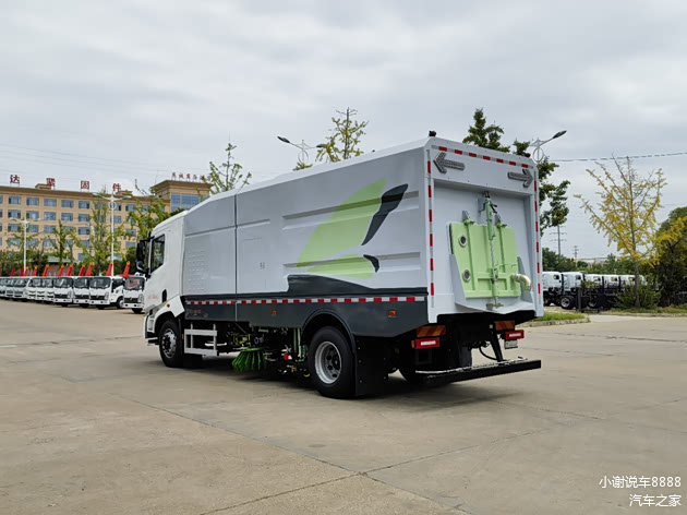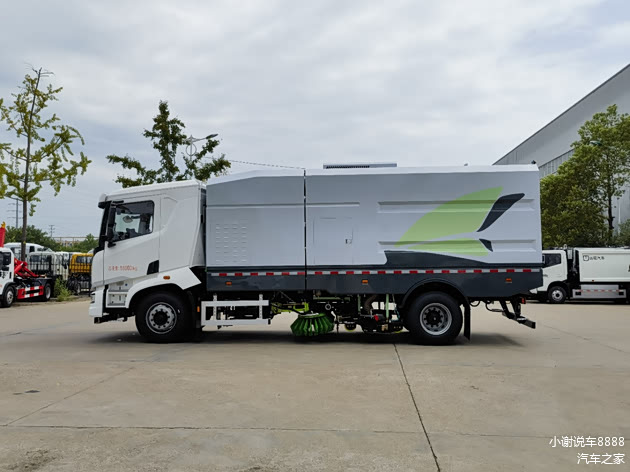 上装主要配置:不锈钢清水箱约9立方/垃圾箱10立方,底盘电池提供动力,永磁同步电机驱动,中置2扫盘,中置宽体吸盘,最大洗扫宽度4米,GF36高压水泵150L,高压前喷雾,高压中喷,高压后喷雾,20米高压卷盘,垃圾箱自洁,海普瑞斯液压油缸,免维护离心式风机带消音器,尾部LED箭头灯,机油、垃圾箱、水箱均带防溢或低位报警装置,倒车及洗扫状态室内监控系统,多条语音提示,CAN总线控制+尾部电控操作系统,威龙50—110低压泵,对冲宽度20米,冬季气排水装置!