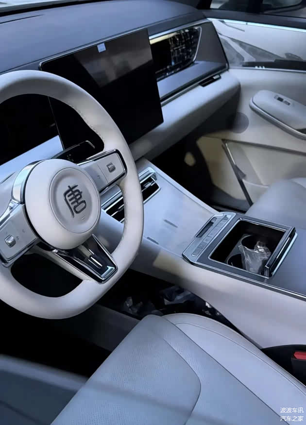 对于内饰,我们可以看到比亚迪大唐一如既往的采用较为厚重的设计语言打造,它的标准不低,比如说材质,肉眼可见的有质感,新车的内饰很像是唐L的升级版,它的方向盘采用了全新的设计,中间采用圆形的轮廓,效果非常的动感,方向盘上的按键的风格也比较前卫,中间有一个唐字的logo。新车的中控台的中间继续采用悬浮式的大屏,副驾驶的一侧同样有一个大屏,这下老婆坐在副驾驶有事情干,不用指挥车辆了。新车的前侧的中央通道采用的是非常简约化的布局方式,它配备有无线充电,后侧的扶手也很有质感,有隐藏式的水杯架,上面的金属拉丝质感的盖板看起来很不错。此外,我们可以看到大唐的门板上的纹路也非常的特别,采用的是中国风的元素。