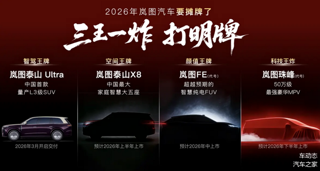 如果说上市是岚图的“资本大招”,那么 2026年的新车投放 则是其抢占市场的“组合拳”。今年,岚图计划推出 4款全新车型,全面布局新能源汽车市场。
