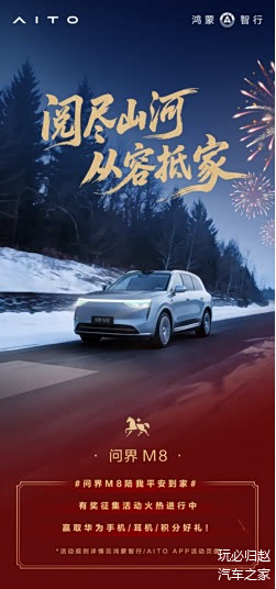 马年归途,千里相伴。每一段温暖的归程,都值得被悉心记录。春节期间,问界发起#问界M8陪我平安到家#故事征集活动,诚邀问界M8车主分享春节归家与返程路上的温暖见闻:即日起至2026年2月28日,带话题#问界M8陪我平安到家#分享你的出行故事,并@AITO汽车官方账号,用文字、图片或视频定格团圆路上的动人瞬间,不仅可以与万千车友一同点亮这个马年春节的记忆坐标,还有机会赢取华为手机、耳机、积分好礼等。