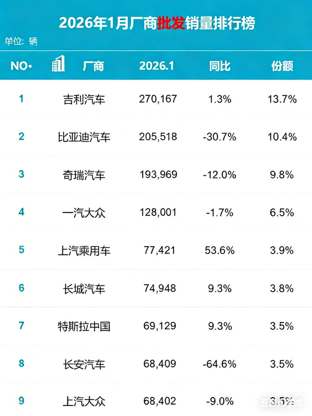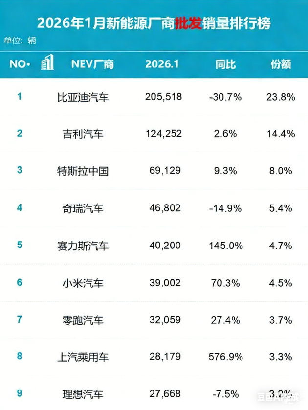 购置税减免的退坡,像接下来的竞争,将彻底回归到产品本身——谁的续航更真,谁的智能座舱更懂你,谁的自动驾驶更安全。因此,1月的销量其实是给2026年的车市定下了一个极其残酷的基调:“活下去,并且活得好得要有本事的。”。