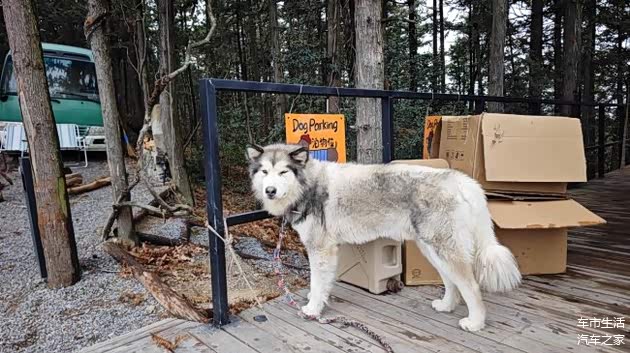 门口还有几个泊狗位,真是讲究!这只阿拉斯加是老板自家养的,可乖顺了!随便撸!
