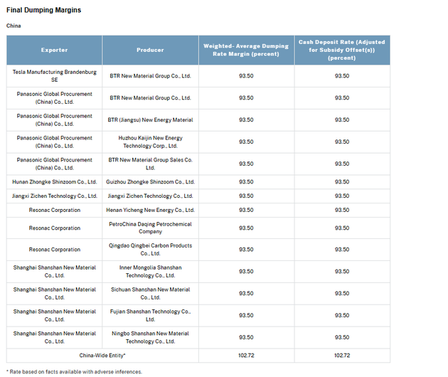 这一关税政策的出台,源于美国商务部此前针对中国石墨出口商的双反调查。调查认定,中国相关企业存在低于公平价格销售及接受政府补贴的行为,对美国本土产业构成不公平竞争。最终裁定显示,美国将对用于锂离子电池的负极活性材料(包括天然石墨、合成石墨、涂覆或未涂覆产品及相关混合材料),征收最高 102.72% 的反倾销税与最高 66.86% 的反补贴税,叠加此前已生效的 25%“301 条款” 关税和 20% 的紧急经济权力关税,综合税负突破 160% 大关。
