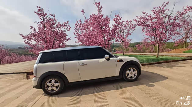 我沿着樱花隧道缓缓前行,脚下是飘落的花瓣,身旁是盛放的花枝,仿佛闯入了童话世界。晚风轻拂,花瓣漫天飞舞,落在老MINI的车身上,像是大自然馈赠的礼物,疲惫在这一刻烟消云散。
