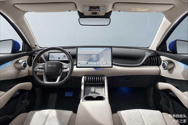 内饰的部分采用了米色和灰色搭配,排挡杆移到方向盘后方,而中央鞍座也经过重新设计,配上两个置杯架、实体按钮以及50W手机无线充电面板。车内也搭载了8.8寸数码化仪表板、12寸中控屏幕、HUD抬头显示器、A柱驾驶员监测系统摄像头、智能车载冰箱等。