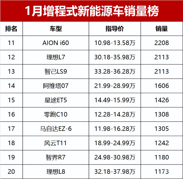 【2025年1月增程式新能源车销量排行榜】开年的国内车市,寒意比想象中更浓。乘联会数据显示,1月新能源乘用车零售销量59.6万辆,同比跌幅达到20.0%,市场表现甚至不如常规燃油车。在这样的大环境下,增程式新能源汽车表现显然也不尽人意,合计销量仅7.2万辆,在新能源车中的份额只有12%,销量破万辆的增程式新能源车也仅有1款车型。凄凉!1月增程式新能源车销量榜,仅1款车破万辆,理想遇冷!