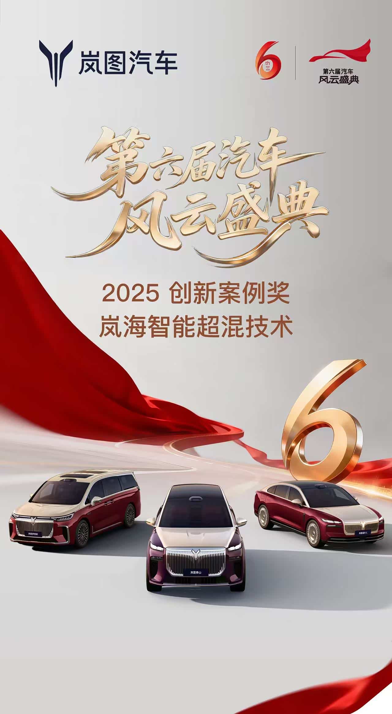 央视第六届汽车风云盛典结果出炉 岚图直接拿下“风云2025年度创新案例”与“2025风云车”,是本届极少数可以做到技术和产品两项都拿奖的 岚图这次是泰山车型拿到风云车,而2025年的岚海智能超混技术,也是让岚图车型大步向前,800V+65度大电池,补能和续航都很棒 而且之前岚图已经获得“世界十佳混合动力车型”“世界十佳混合动力系统”双项国际荣誉 所以对岚图来说,这是技术上的领先 年前拿到这样一个好荣誉,不错
