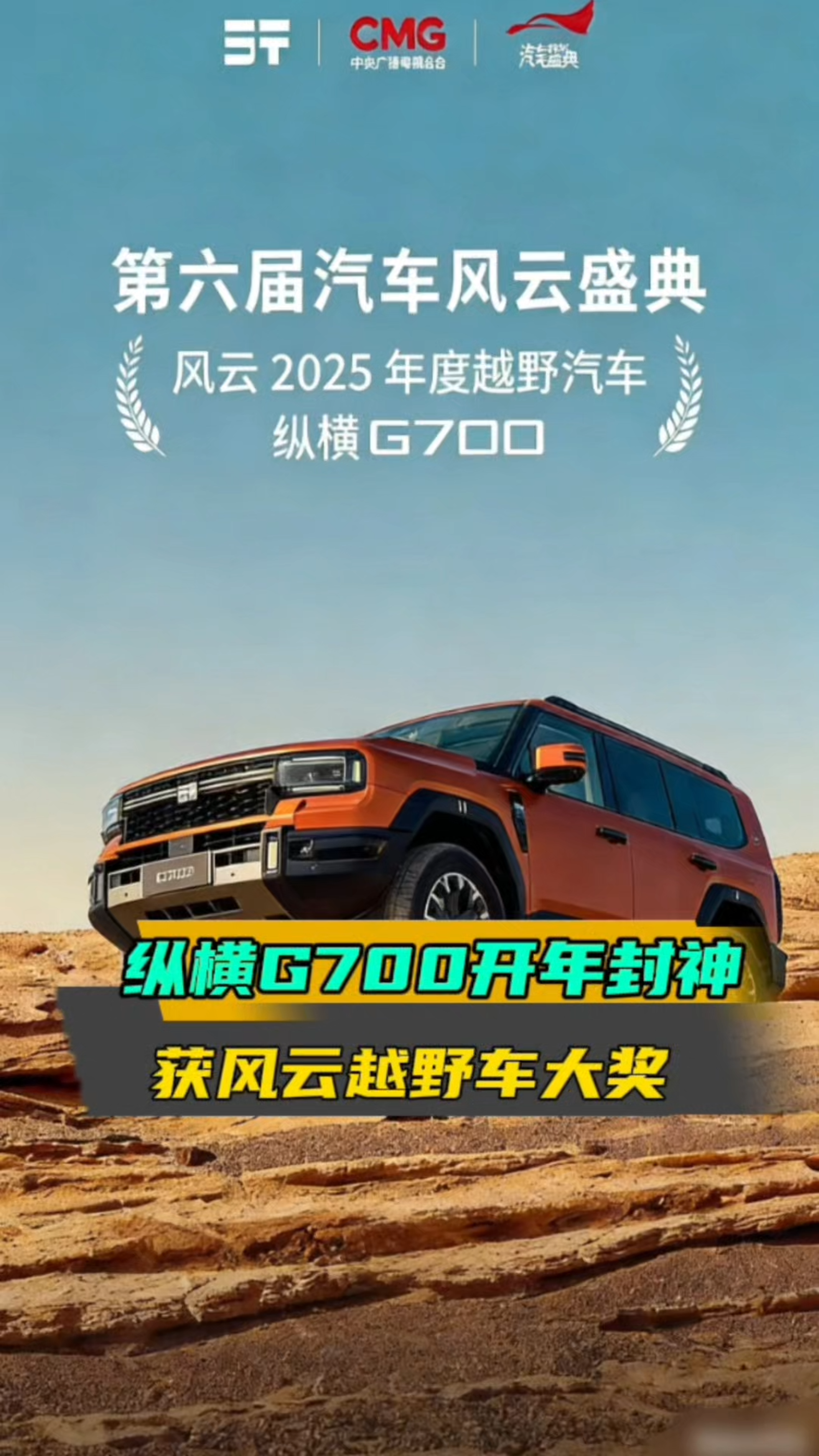 喜报传来,恭喜纵横G700 加冕风云2025年度越野汽车