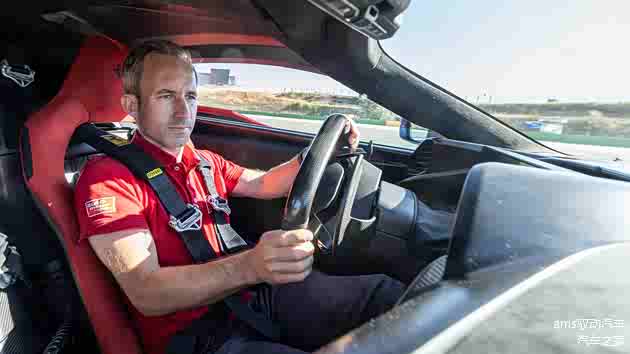 驾驶舱宽度比LaFerrari窄16毫米,驾驶席可前后调节,副驾驶直接坐在碳纤维单体壳上。方向盘支持上下与前后调节,仪表与转向柱固定,方向盘内置换挡提示灯。按下触屏启动键,发动机几乎无震动启动,切换至Performance模式,旋转Manettino至赛道(Race),释放全部动力。