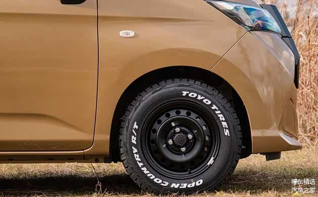 在 Roomy 的 MPV 方正造型之中,全新 Dunk 换装带有 TOYOTA 字样的大面积六角形水箱护罩,并刻意以未涂装处理的设计手法带出粗犷质感,成为外观造型的最大亮点。除此之外,脚下也特别采用 15 寸复古铁圈搭配 Toyo Open Country R/T 全地形轮胎,在强化户外气息的同时,也有助提升越野表现。值得一提的是,Papa Mama Cars 还为全新 Dunk 准备了棕色、绿色、卡其色等多款定制车色,让车主能依喜好自行选用。