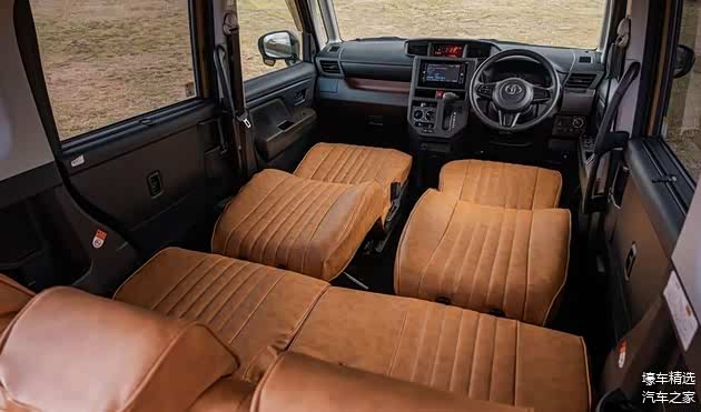 全新 Dunk 内饰焦点在于采用 Papa Mama Cars 精心制作的棕色皮革椅套营造出温馨的座舱氛围,搭配既有的座椅倒平功能,随时随地都能创造出舒适的休憩空间。