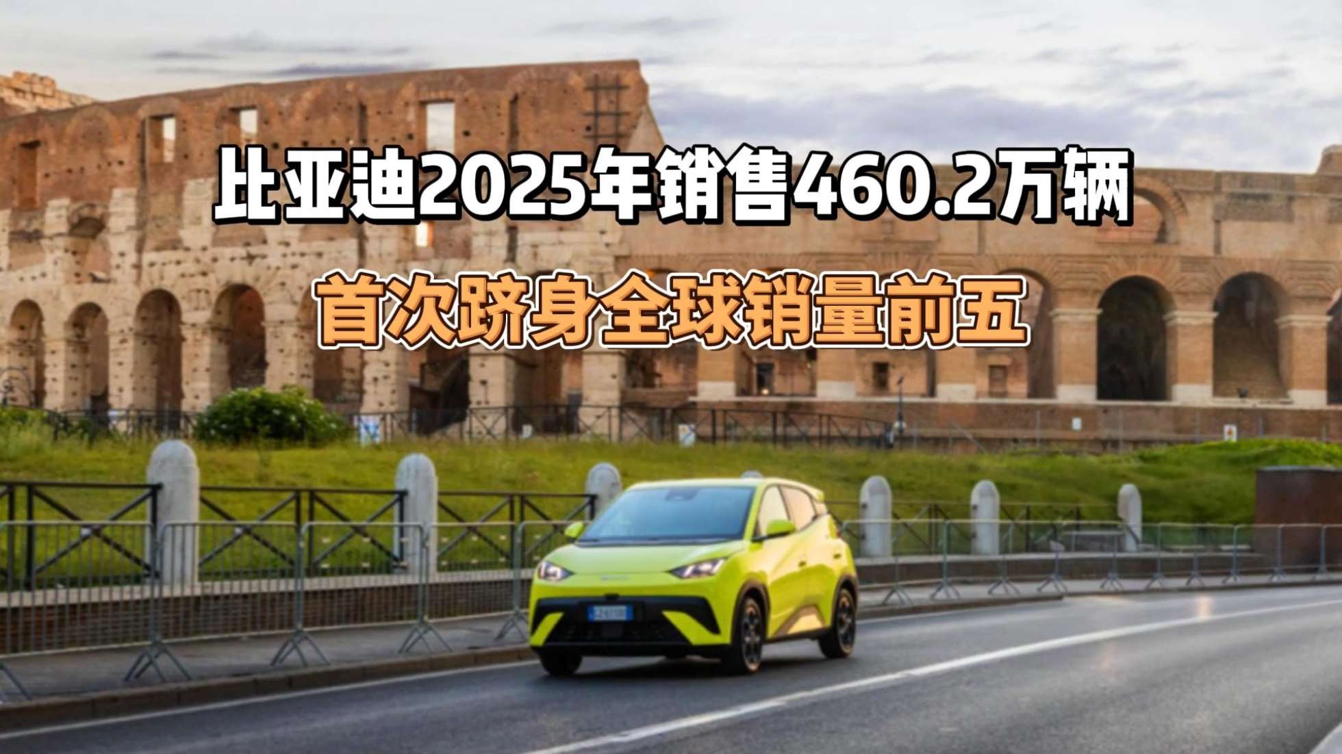 比亚迪2025年销售460.2万辆 首次跻身全球销量前五