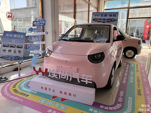 一个非五菱官方店内,摆放着一辆五菱埃尚,店内同时销售其他不挂牌的小车。销售表示,官方的五菱店并不卖这款车型,这是五菱新能源的独立品牌。这款车也有“补贴车”,车价4.68万,补贴价为3.68万,赠送交强险。