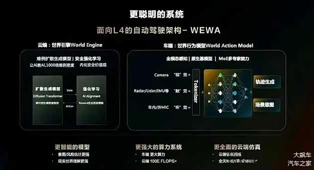 华为认为开车应是“肌肉记忆”,追求极速物理反应,所以需要省去了语言中介。所以从ASD4.0开始,华为直接宣布绝不走VLA路线,而是坚持 WA(World Action)物理直觉,世界行为模型。这就是马斯克所说的“第一性原理”,所以特斯拉FSD也是WA模型,当然还包括蔚来。