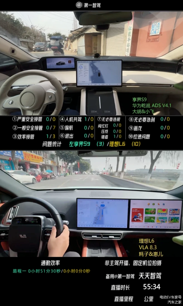 辅助驾驶的实测差距,在复杂路段中体现得淋漓尽致。博主选取的均为难度较高的测试路段,其中理想 VLA 8.3 的表现尤为突出 ——50 多分钟的实测中,安全接管次数高达 7 次,还出现了无红绿灯十字路口几乎不减速、右转误入中间车道后盲目向左变道险些被撞的危险操作,这类判断失误在实际通行中,极易引发交通事故。蔚来、极氪、智己等品牌的辅助驾驶系统,也在实测中暴露出各类问题,与日常宣传的智能体验形成明显落差。