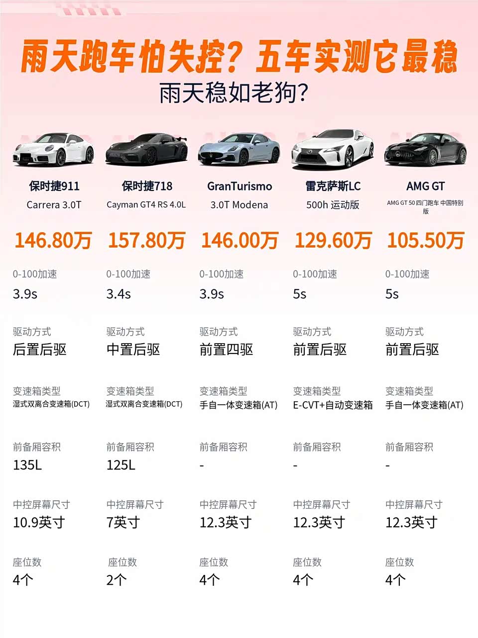 💡 结论:要暴力操控+雨天安全感,911的后置后驱+电控才是真六边形战士!