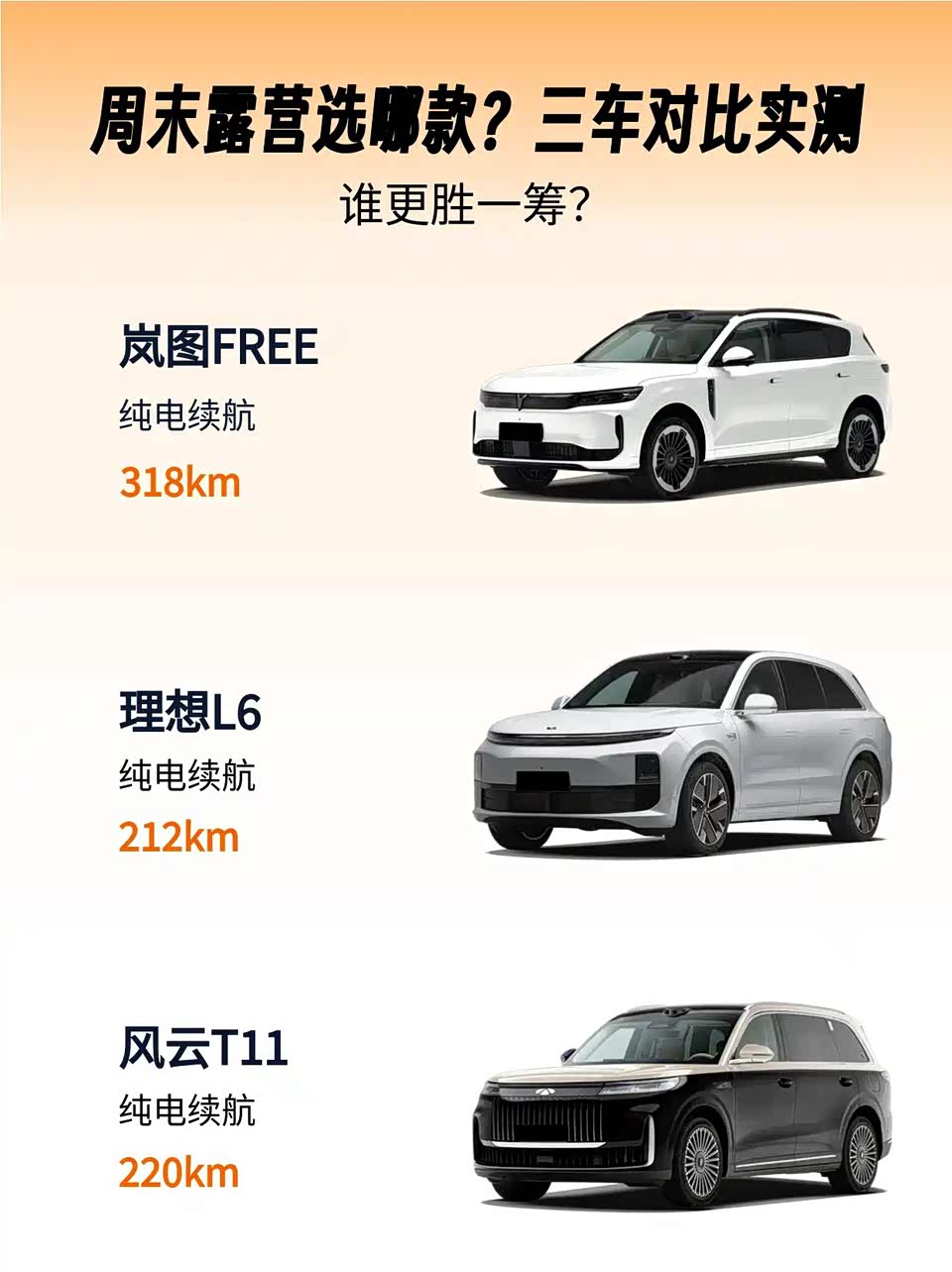 岚图FREE后驱乾崑版 vs 理想L6 Pro vs 风云T11全家乐,三车实测干货来啦👇
