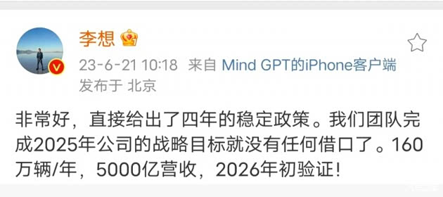 如,2022年,小鹏汽车在前一年销量不足10万时,制定了25-30万的目标。理想汽车的2024年销量目标原定80万辆,后下调至56-64万辆,2025年原定目标为70万辆,后下调至64万辆。