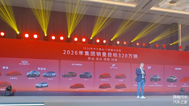 奇瑞汽车的2026年销量目标为320万辆,其2025年实际完成销量为280.6万辆。