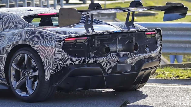 所以,所有迹象表明这款伪装车是一款296 Challenge Stradale车型,比去年推出的Speciale版本更加专注于高性能。如果真是这样,那新车动力将是亮点。按照法拉利遵循赛车模式调校,这款符合上路标准的车型可能会舍弃混动系统,转而使用纯粹的V6引擎,以减轻重量。