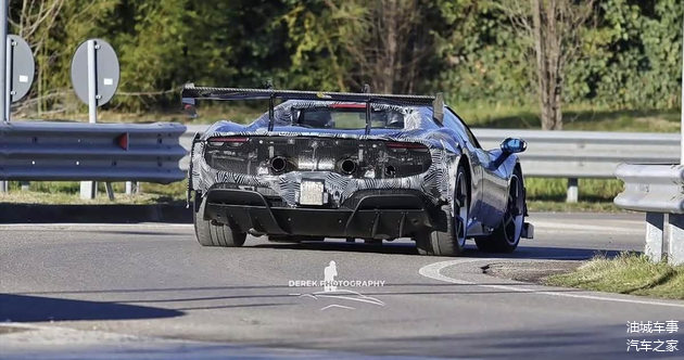车尾部分是辨识其特殊身份的重点,尽管有部分遮挡,但仍可观察到其排气系统采用了偏中置的双出布局,这与Speciale车型有所不同,更接近赛道化设定。后包围的网状格栅与扩散器结构也显得更为激进,预示着在空气动力学效率上会有相应提升。