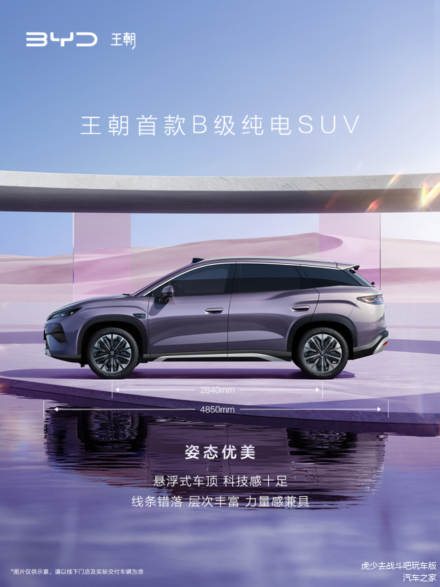 从工信部公示信息可知,新车车身尺寸达4850/1910/1670mm,轴距2840mm。值得一提的是,宋Ultra EV的二排腿部空间达到了986毫米,超过了奔驰GLE、宝马X5等中大型豪华SUV的后排空间。作为王朝网纯电出行的标杆之作,宋Ultra EV精准锁定B级纯电 SUV 市场。