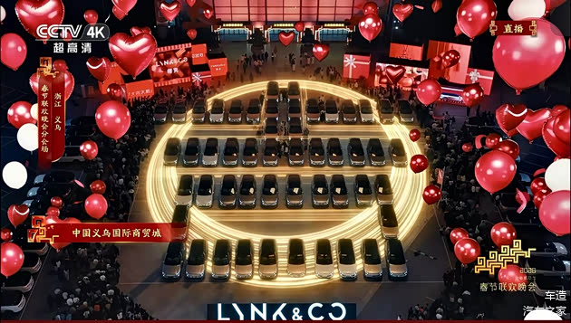 【2026年2月16日,义乌】丙午马年除夕,中央广播电视总台《2026年春节联欢晚会》义乌分会场华灯璀璨,春意融融。百余辆领克900整齐排列,组成寓意吉祥的“吉”字车阵,气势恢宏,蔚为壮观。车内大屏播放着“领克900号”卫星成功发射的振奋画面,后备箱中满载着象征团圆与富足的各式年货,“天地联动”呈现中国智造创新力量与中华优秀传统文化的深度融合。领克义乌生产基地的近千名产业工人,与领克900一起向全国人民和海外华人致以“新春快乐、大吉大利”的真挚祝福,展现出奋斗者的实干与热忱,以及对美好生活的无限期许。领克900以“百车成‘吉’,千人同贺”的宏大创意,为全球华夏儿女献上独具匠心的马年新春贺礼,描绘出新时代家国同庆、万象更新的盛世图景。