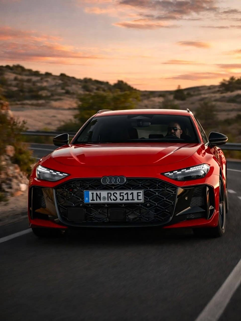全新奥迪RS5,新车在外观上有着更加运动的风格,提供旅行版以及三厢版可供选择,动力上搭载用2.9T V6+电动机组成的插电混动系统,匹配7速双离合变速箱以及quattro四驱系统,可以纯电行驶,纯电续航里程大约为100公里,前脸中网格栅的尺寸较大,内部采用了全新的扁平车标设计,还运用了菱形的格栅纹理造型,间隙较大,有着霸气的运动风格,两侧格栅采用了新的设计,提供蜂窝式的格栅以及犀利的格栅线条,头灯组也是采用了更加精致感的设计。侧面旅行版采用了舒展硬朗的设计,D柱采用了倾斜的造型,车身有肌肉感,轮毂采用了大尺寸的设计,整体的风格极具运动的性能范,三厢版采用了硬朗的侧裙,提供大尺寸的轮毂设计,有着运动的风格。尾部提供贯通式的尾灯组,提供双出的排气管,造型比较高级,
