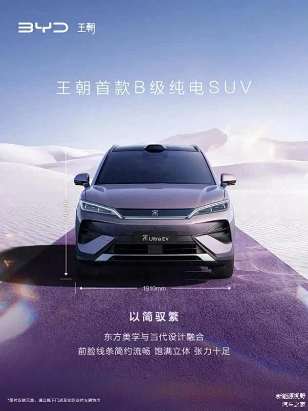 近日,比亚迪官方发布宋更大尺寸SUV——宋 Ultra官图,新车基于比亚迪e平台3.0打造的中型纯电SUV,将于2026年上半年亮相。动力上,搭载单电机后驱系统,最大续航可达710km,可选装激光雷达。