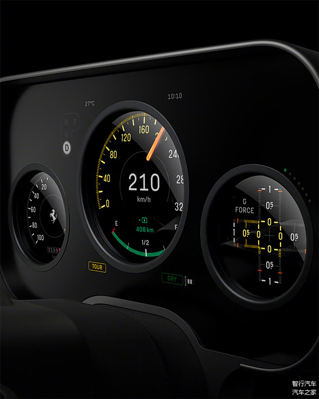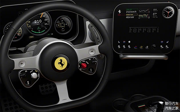 此外, 新车还采用了三幅式方向盘,这一设计带有明显的经典法拉利气质,并且据报道,这一方案是由Piero Ferrari(恩佐之子)推动,坚持采用更具传承意味的三幅比例与观感,同时还要兼顾安全气囊与现代集成控制的工程难题。