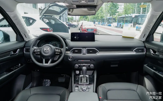 来到内饰,我还是偏爱马自达的设计,整个内饰布局很清爽的感觉,但也不缺质感,相比同价位的日系车,比如中控台有一个软包。因为内部海绵填充充足,马自达CX-5在用料上还是很有诚意的,按下去的质感很不错。座椅也都是软包,在保留支撑性的同时也是十分有韧性,坐上去的感觉很柔软。还有车内实体按键得到保留,配有无钥匙进入、一键启动和电动后视镜。那它的仪表就有很机械感,指针转动更直观一些,给到的屏幕是10.25英寸但是看起来很小,好在功能齐全,比如倒车影像、CarPlay、华为HiCar都支持,自适应巡航等功能也颇受欢迎,但L2级辅助仅在中高配才有。