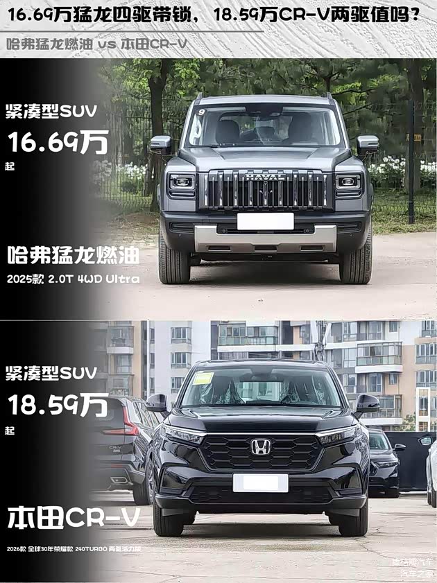 最近在选20万级SUV的朋友看过来!🔥 刚深度试驾完 哈弗猛龙燃油2025款2.0T 4WD Ultra和本田CR-V 2026款两驱活力版,这两台性格完全不同的车简直像「硬汉vs暖男」的终极对决!💪