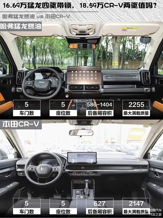 周末想去越野露营?猛龙的透明底盘+220V电源+拖车钩资质能带你上山下河。CR-V更适合城市通勤+超市采购,混动版油耗更低但这台燃油版没啥优势。