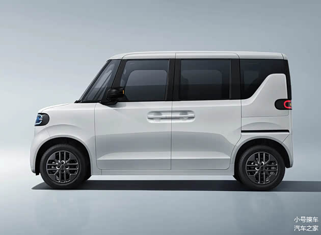 侧面造型方面,车顶线条比较平直,车身线条也比较方正,车身还营造出了悬浮式造型,和目前比亚迪旗下的车型设计语言都有比较大幅度的区别;腰线采用的是贯穿式设计,点缀出了车身侧面的层次感;而且后门还采用了侧滑设计,这在K-Car上倒也是比较常见的设计语言;轮毂采用的是熏黑的四幅式,风格比较小巧。