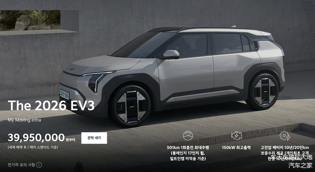 同级的起亚 EV3在2025年上市的时候官方起售价大约是4,208万韩元。为了应对竞争已经调整到3,995万,折合人民币大约是19万。价格高出一大截。