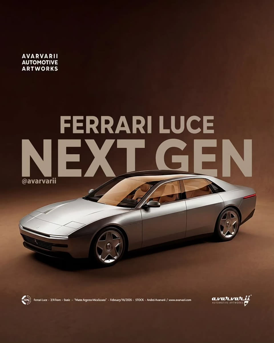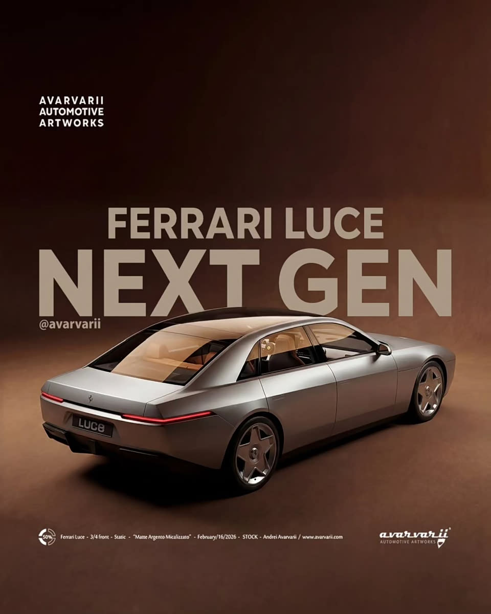 全新法拉利Luce假想图,假想给出的是复古的设计风格,并且是四门轿车的造型,不过还得以最终的官方版本为主,这只是纯假想图,动力上搭载纯电动系统,外观上采用了简约硬朗的线条设计,前脸运用了扁平的格栅,下唇带有犀利的套件设计,头灯组运用了细长的造型,有着复古的设计,前盖有望带有翻灯的设计,侧面采用了经典的车身线条,车身运用了平直的设计,C柱的设计比较硬朗,提供经典的轮毂造型,侧面的设计很有气势。尾部采用了简约硬朗的设计,提供细长的尾灯组,尾部的设计比较经典。假想图的造型比较漂亮。