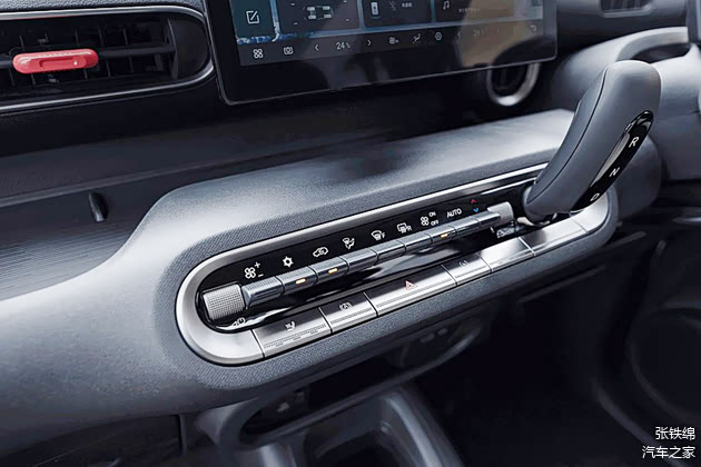 中控屏下部带有一组实体按键,中间是钢琴键式造型,下部是镀铬装饰的按键,电子档杆造型有着不错的精致感。
