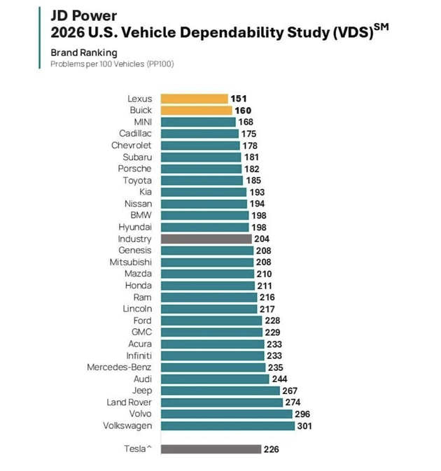 虽然科技与汽车的连接更紧密,但整体的汽车可靠性似乎却在下降,JD Power 公布最新 2026 年车辆可靠性研究,汽车故障数量创下 2022 年以来最高纪录,可靠性持续下降。