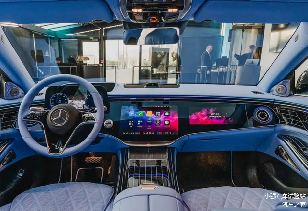 内饰方面,新车采用全新设计,配备12.3英寸全液晶仪表、14.4英寸中控屏幕及12.3英寸副驾驶屏幕,三块屏幕衔接协调,搭载最新的MBUX智能人机交互系统,还配置增强现实平视显示系统。车内采用全新配色,豪华气质突出,前排座椅内置19个调节电机,配备可加热式安全带,后排座椅支持最大43.5度靠背调节与50度腿托角度,同时提供MB.DRIVE辅助驾驶,可升级至MB.DRIVE辅助驾驶PLUS。