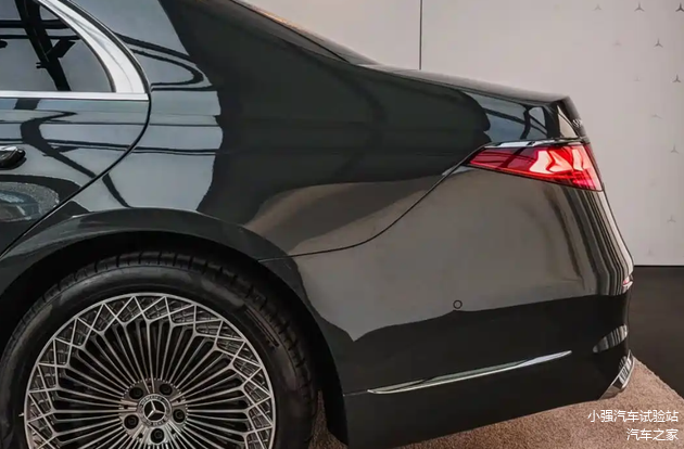 车身侧面,新车变化不大,延续了经典的豪华姿态,硬朗的腰线贯穿车身,搭配大尺寸密集轮毂,轮毂造型虽复杂却尽显豪华风格,简约的侧裙设计进一步提升整车精致感。车身尺寸方面,新车长宽高分别为5304/1921/1503mm,轴距3216mm,长轴版本还额外加长14mm,宽敞的轴距为车内舒适空间提供了充足保障。