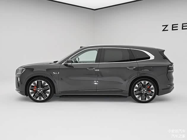 再来看车身侧面部分,极氪8X长宽高分别为5100/1998/1780mm,轴距达3069mm,比宝马X5M长97毫米,比保时捷卡宴长174毫既稳健贴地,又为乘员舱争取到最大化空间。 车身线条柔和流畅,相较于极氪9X的硬朗平直,更显动感。略带下米。得益于“四轮四角”设计理念,车轮尽可能推向车身四角,营造出短前后悬、长轴距的比例,斜倾的尾窗以及内收的车肩,塑造出蓄势待发的运动姿态。侧窗采用水切式平整化设计,立柱与玻璃同平面,高级感十足。