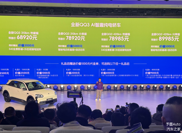 奇瑞QQ3,今晚开启预售,6.892万—8.9985万。