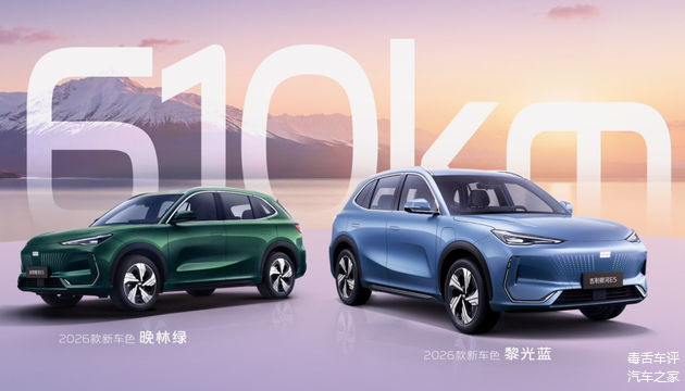 先看续航这个纯电车的“基本功”。2026款银河E5这次对续航里程进行了直接扩容,原440km版型升级为530km,原530km版型则提升至610km。这种全系续航的上探,意味着即使是入门版的530km启航版,其续航能力也足够覆盖日常通勤半径50公里的用户接近两周的使用。而610km版本带来的改变更为实际,电池容量增加了8kWh,达到68.22kWh,这80公里的额外续航,让周末往返近郊露营地变得毫无压力。更重要的是,全系标配的6.5kWh外放电功能,能让车辆变成一个移动电站,支持电磁炉工作约2小时或投影仪播放4小时,家庭户外生活的乐趣因此得以延伸。