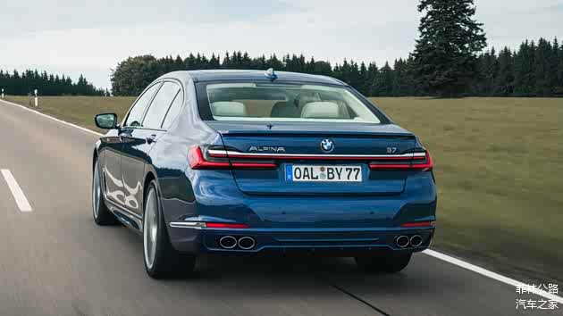 新车基于中期改款宝马7系打造,外观方面有着阿尔宾娜的家族式设计语言,拥有更加强大的空气动力学套件、刹车系统、隔音功能,最重要的是动力方面也有提升。搭载一台4.4L双涡轮增压V8发动机,最大马力600匹,峰值扭矩800牛·米。作为一个2.2吨的家伙,它可以在3.5秒完成0-96KM/h的加速,而最高时速可达330KM/h。相比老款车型,不仅提速更快,最高限速也有所提升。标配20英寸轮毂,但是客户可以自己选装21寸的性能包,重量减轻了20%,搭配更强大的刹车系统,让你在使用中总是那么得心应手。后轮拱位置增加了隔音装备,保证了后排乘客在车内更好的静谧性。B柱位置拥有隔热效果,风挡玻璃、侧窗玻璃、后窗玻璃都比之前增加了0.2英寸的厚度。那么这台车需要多少钱呢?官方给到的新车指导价为141700美元。