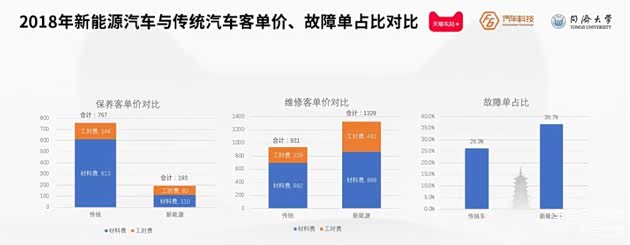 新能源汽车保养客单价是193元,传统燃油车是757元,前者只有后者的25%。但是新能源汽车的维修客单价是1329元,传统燃油车只有931元,前者是后者的1.43倍。