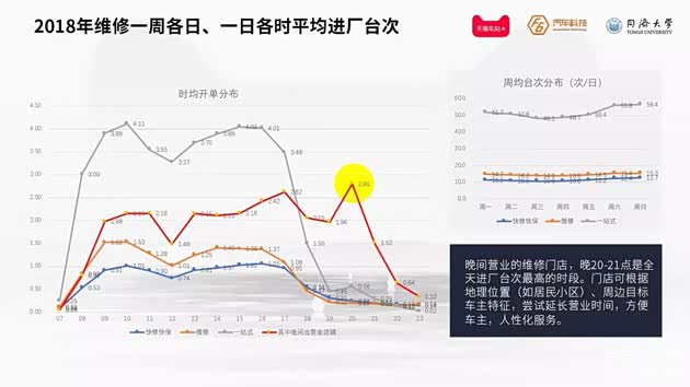 晚间营业的维修门店,晚上20-21点是全天进厂台次最高的时段。门店可以根据地理位置、周边目标车主特征,尝试延长营业时间,方面车主,人性化服务。