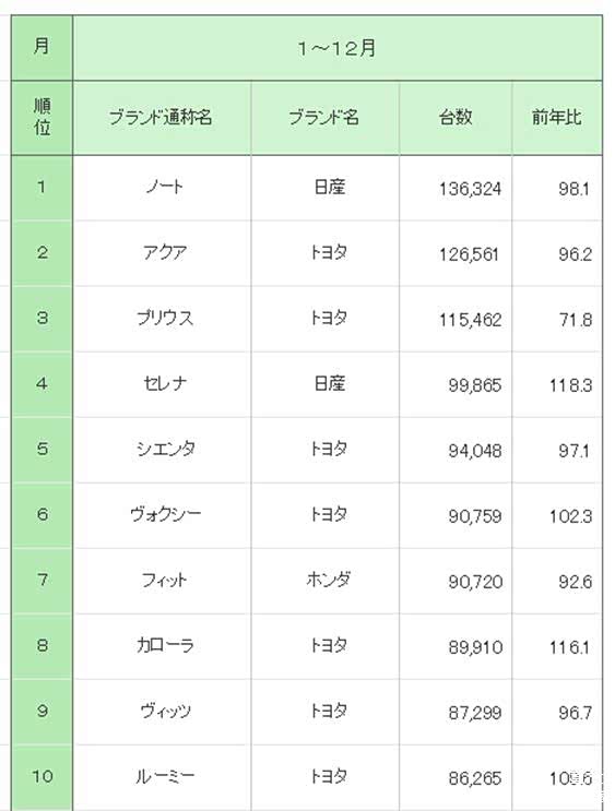 日产NOTE在日本上市后第一个自然年销量节节攀升,全年累计卖出138,905台,仅次于第一名普锐斯的160,912台。到了2018年,销量余势不减的NOTE以136,324台的成绩夺得日本年度销量冠军,这是自1970年日产SUNNY夺得日本乘用车销量第一以来,时隔48年再次登顶。