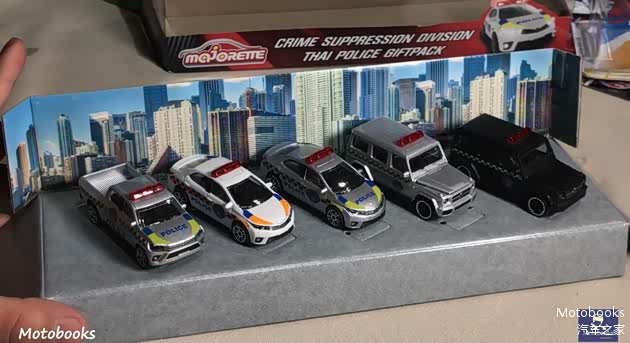 这套 Majorette 领航员小车题材喜人,全套 5 辆均取材于泰国警车,但车型都是 Majorette 出过的作品,以 Giftpack 形式售卖更适合到泰国玩的外国游客选购。尽管其中有重复车型,但这种“刷色”显得并不那么讨厌。